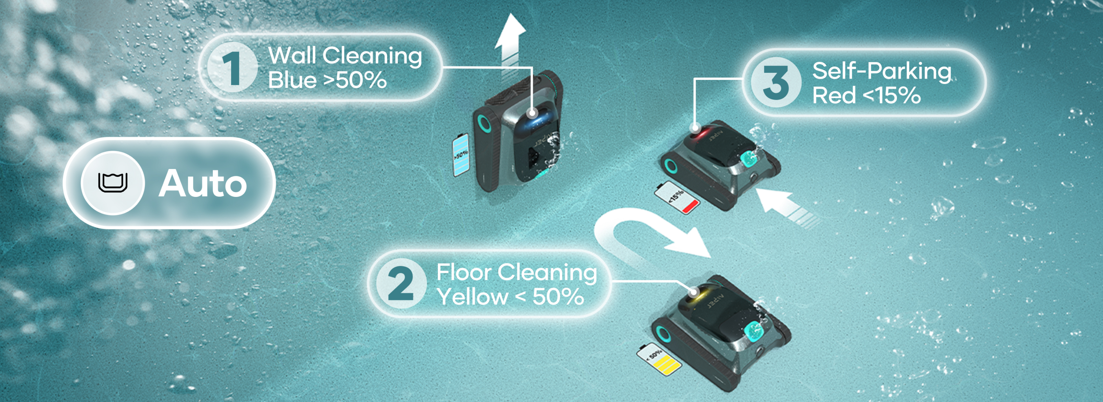 4.In case of excessive algae,use an algae cleaner first, then proceed with robot cleaning for improved results.