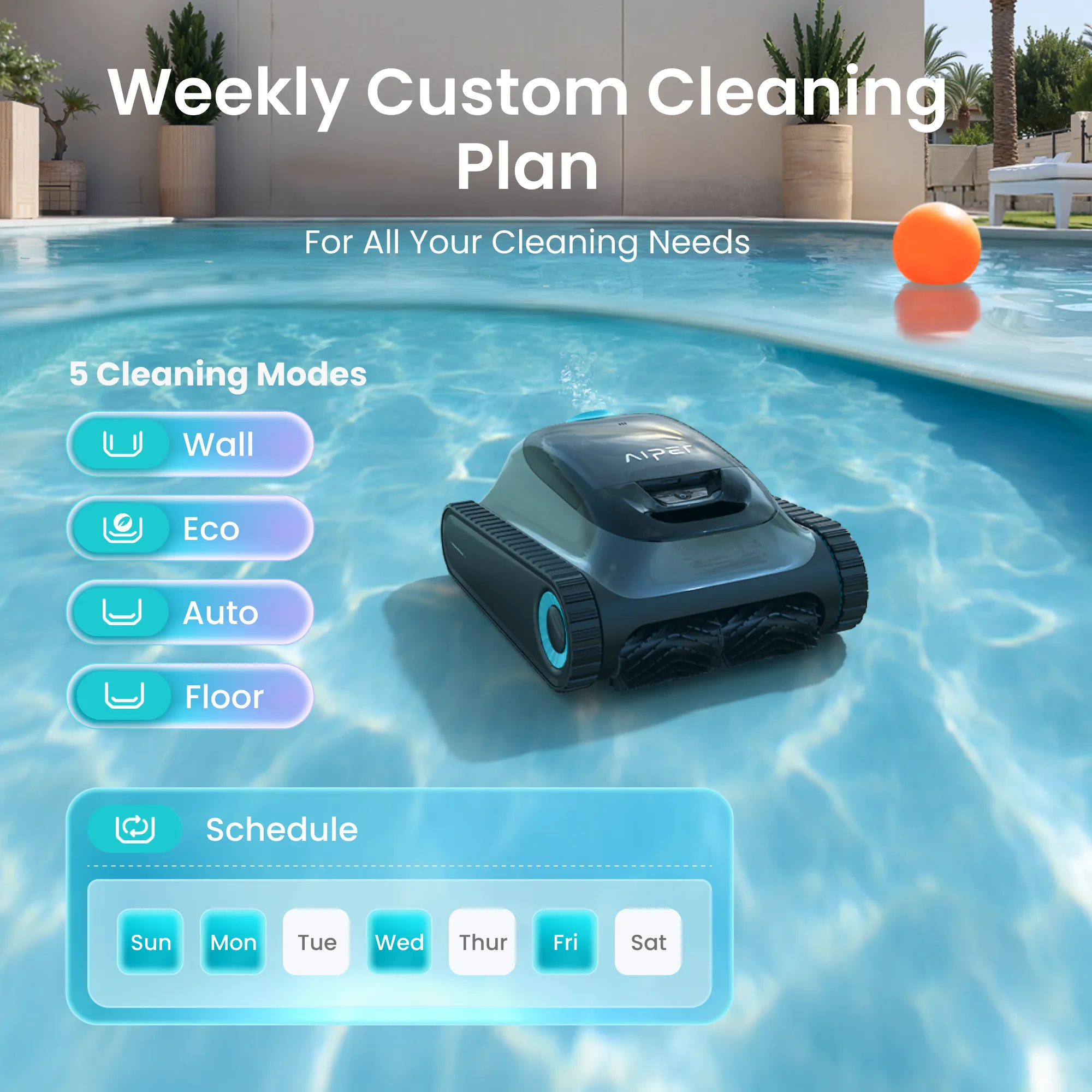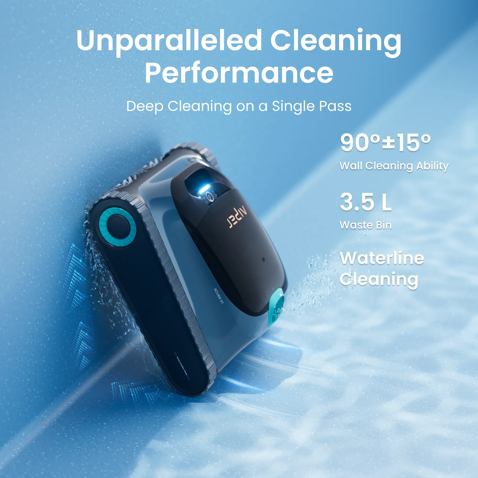 After the device is turned on for 30 s, it will turn the water pump briefly every 10 s to check whether it has entered the water for 3 times. lf it detects that it has not entered the water 3 times, it will shut down; please put the device into the pool within 1 min after starting the device. The device will begin cleaning within 10 s after it reaches the bottom of the pool.