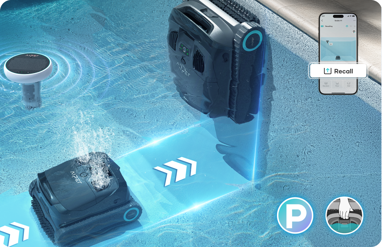 Control & monitor your Scuba X1 from anywhere with the Aiper app. (Note: Underwater use requires HydroComm Pro/Pure.)