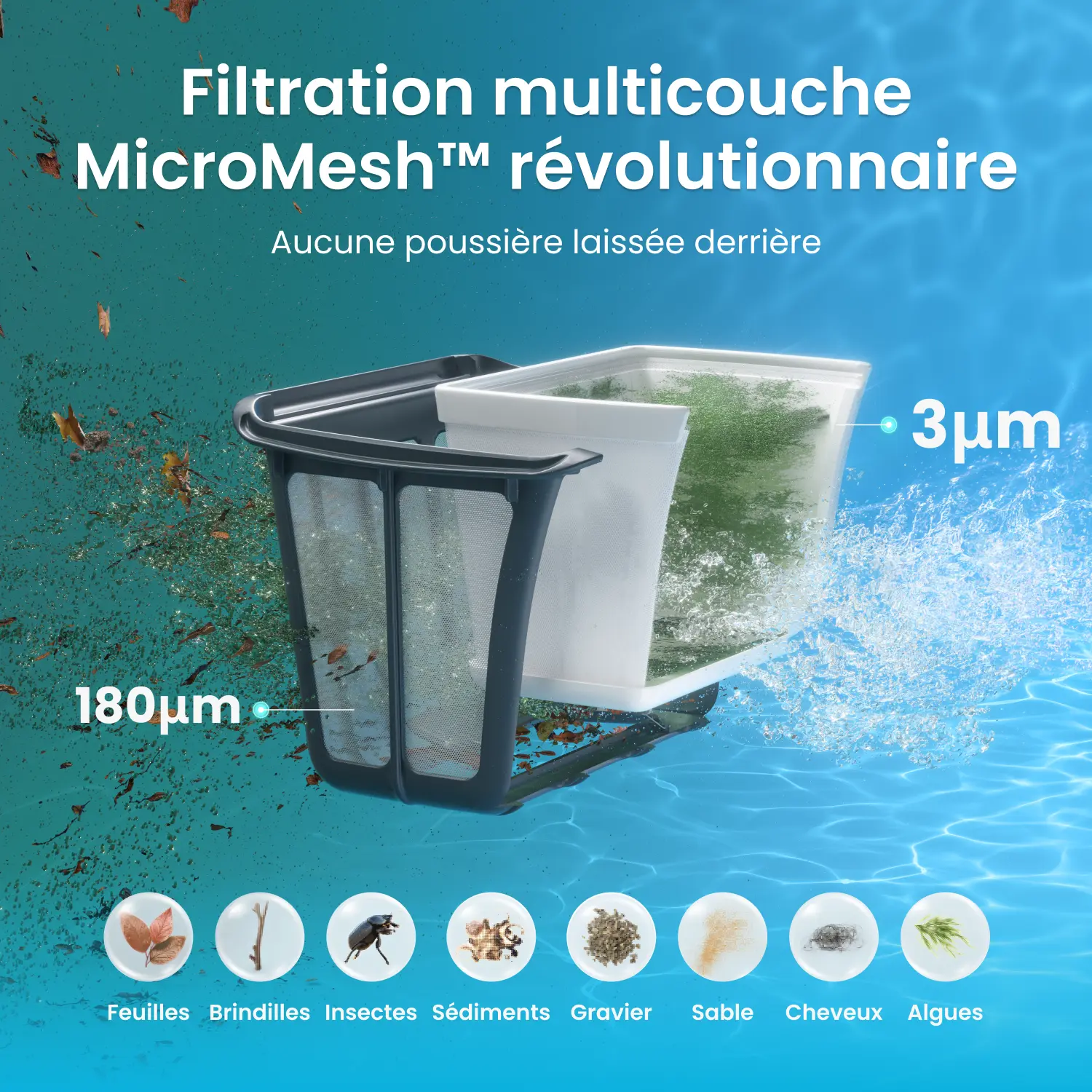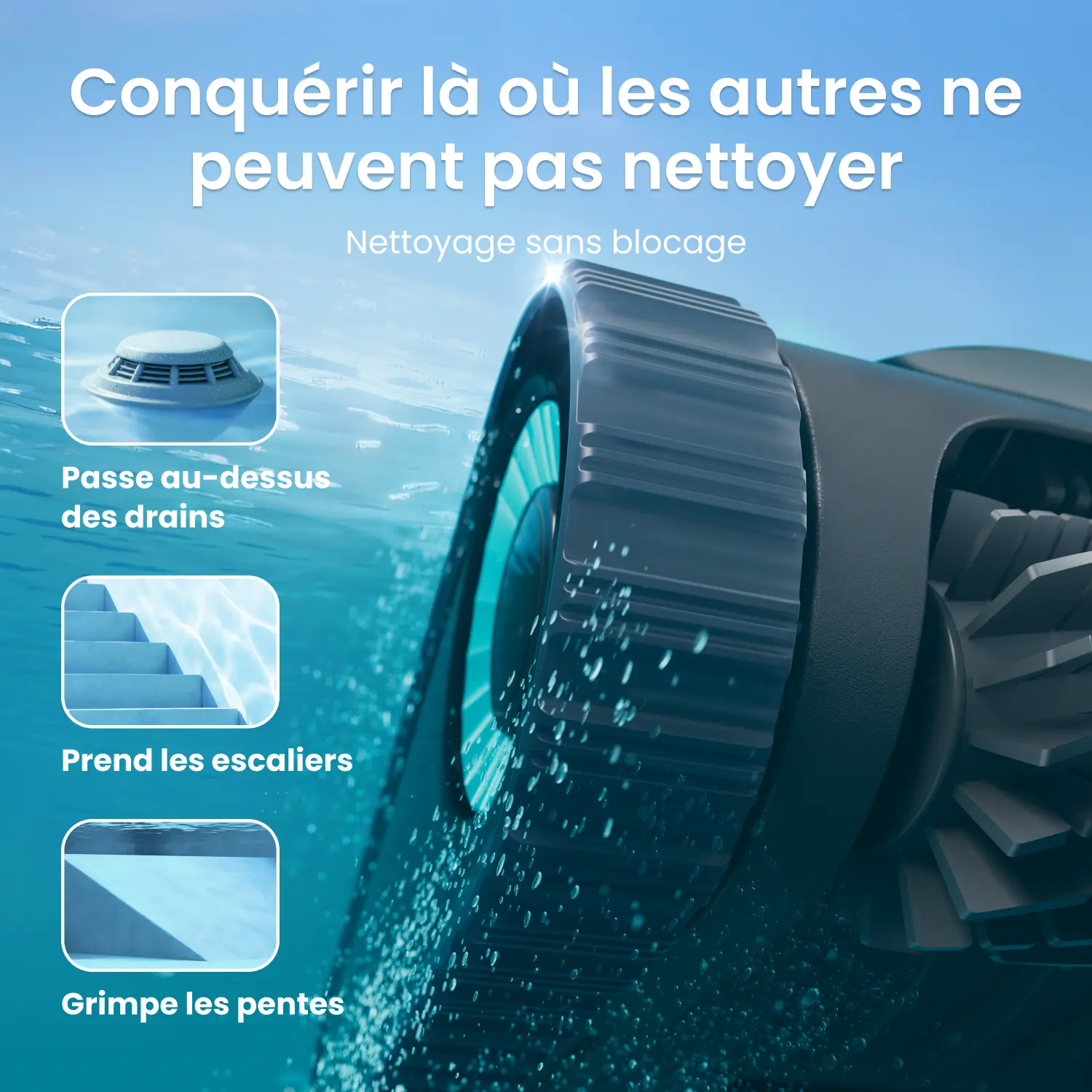 Surfaces de piscine compatibles | Béton, fibre de verre, vinyle, carrelage |
